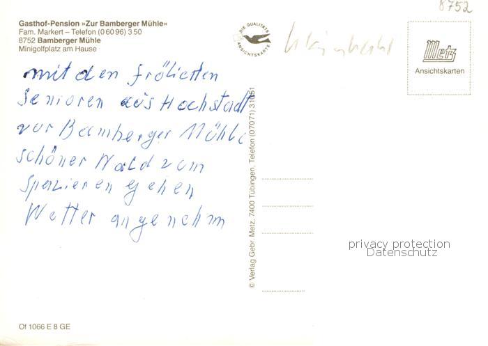 73845676 Bamberger Muehle Gasthof Pension zur Bamberger Muehle Festsaal Panorama Minigolfanlage postalisch nicht gelaufen Erhaltung siehe scans [FriedD77] Frie Katcode 11110009461000