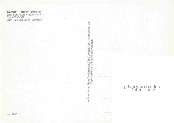 74109644 Bamlach Gasthof Storchen postalisch nicht gelaufen Erhaltung siehe scans [WerneD78] KatCode: 11110008336006