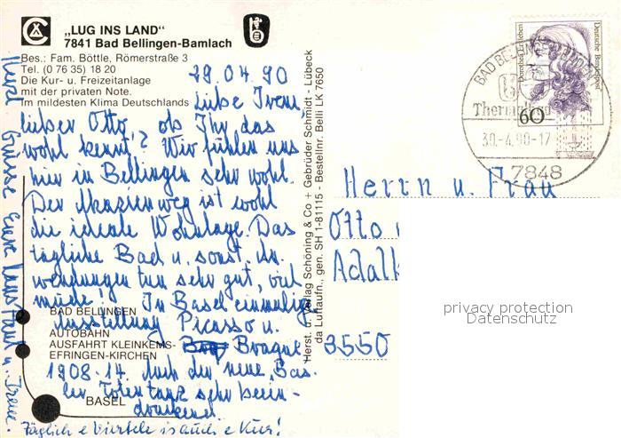 72798842 alte Postkarte Bamlach Lug ins Land Kuranlage Freizeitanlage Schwarzwald Fliegeraufnahme postalisch gelaufen Erhaltung siehe scans [FriedD77] KatCode: 11110008336006