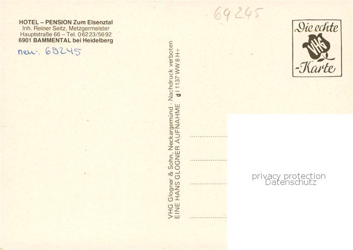 73858316 Bammental Hotel Pension zum Elsenztal Restaurant Terrasse postalisch nicht gelaufen Erhaltung siehe scans [FriedD77] KatCode: 11110008226006