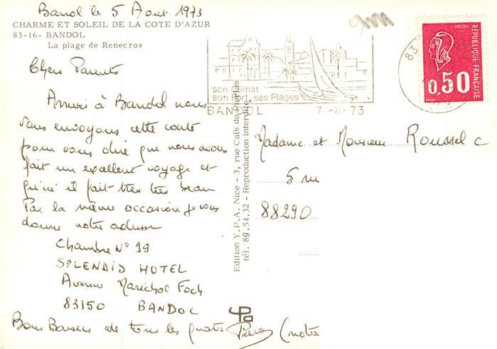 13948519 Bandol 83-sur-Mer La plage de Renecros postalisch gelaufen Erhaltung siehe scans [FriedD77] carte postale Frie Katcode 11170083283009