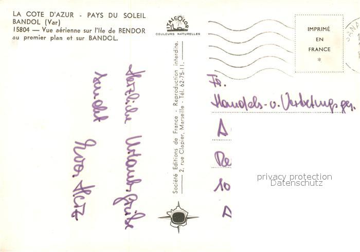 13530523 carte postale Bandol Vue aerienne sur l’Ile de Bendor au premier plan postalisch gelaufen Erhaltung siehe scans [WerneD78] KatCode: 11170083283009