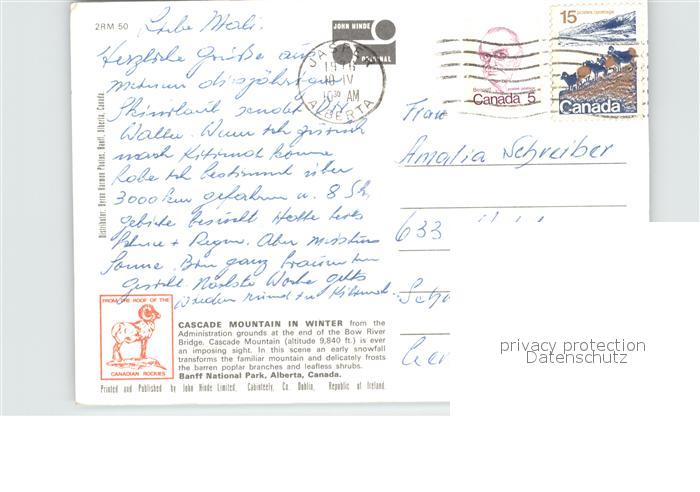 old postcard Banff Canada Cascade Mountain National Park Alta postalisch gelaufen Erhaltung siehe scans