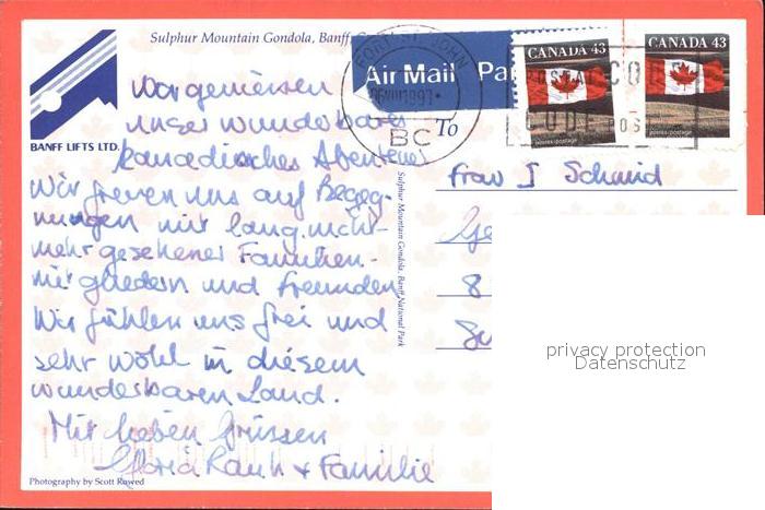 old postcard Banff Canada Sulphur Mountain Gondola postalisch gelaufen Erhaltung siehe scans [WerneD78 kt117box]