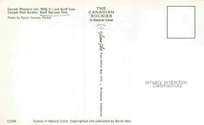 74131704 Banff National Park Alberta Canada Cascade Mountains and Banff from Cascade Rock Gardens postalisch nicht gelaufen Erhaltung siehe scans [FriedD77] KatCode: 14110