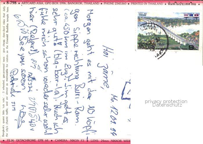 alte Postkarte Bangkok City famous for temples and speedy tuk tuks postalisch gelaufen Erhaltung siehe scans [WerneD78 kt117box]