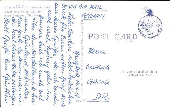 alte Postkarte Bangkok Floating Market postalisch gelaufen Erhaltung siehe scans