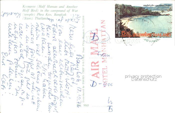 old postcard Bangkok Keenaree in the compound of Wat Phra Keo Temple postalisch gelaufen Erhaltung siehe scans