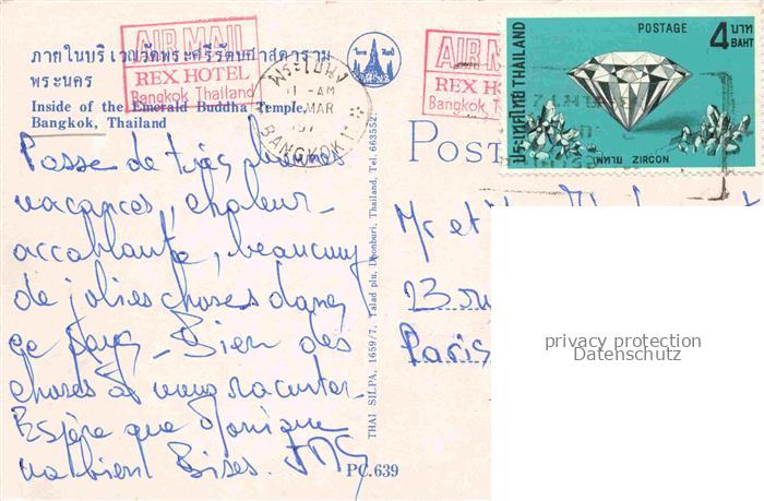 74011886 old postcard Bangkok Thailand Inside of the Emerald Buddha Temple postalisch gelaufen Erhaltung siehe scans [FriedD77] KatCode: 12260