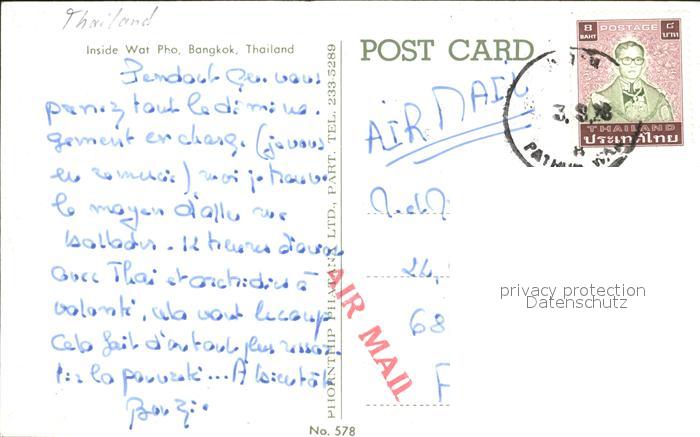 alte Postkarte Bangkok Wat Pho Tempel postalisch gelaufen Erhaltung siehe scans