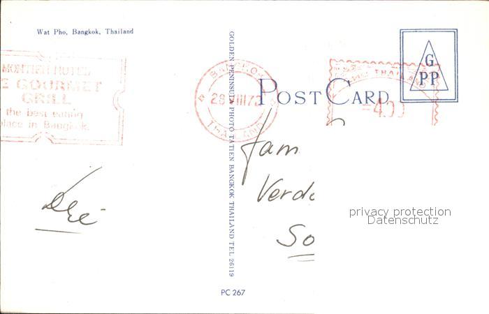 old postcard Bangkok Wat Pho Temple postalisch gelaufen Erhaltung siehe scans [WerneD78]
