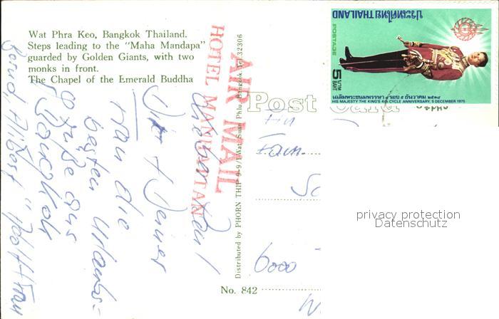 old postcard Bangkok Wat Phra Keo Maha Mandapa Chapel of the Emerald Buddha postalisch gelaufen Erhaltung siehe scans