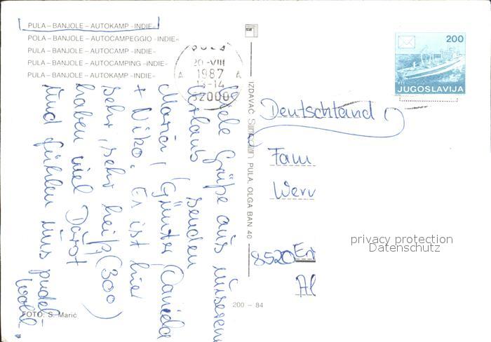 old postcard Banjol Autokamp Indije postalisch gelaufen Erhaltung siehe scans