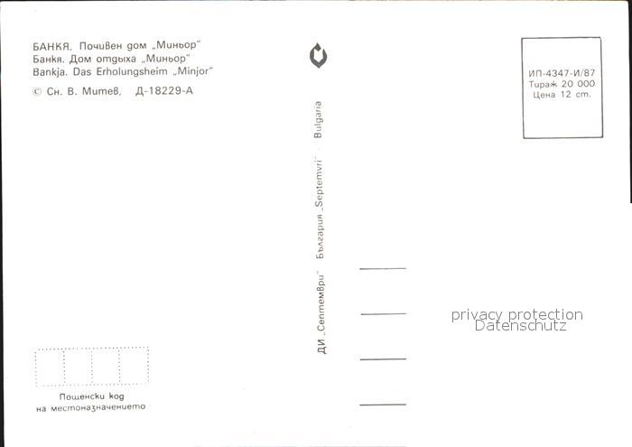 Bankja Erholungsheim Minjor postalisch nicht gelaufen Erhaltung siehe scans [KathaD79]