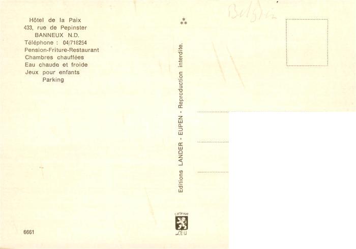 73924385 Banneux Belgie Hotel de la Paix Pension Restaurant postalisch nicht gelaufen Erhaltung siehe scans [WerneD78] KatCode: 11070061007039