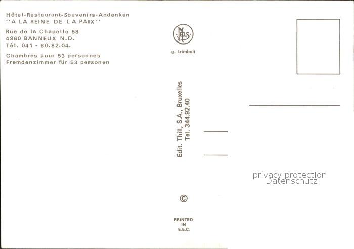71845592 Banneux Hotel Restaurant Souvenirs A La Reine de La Paix postalisch nicht gelaufen Erhaltung siehe scans KatCode: 11070061007039