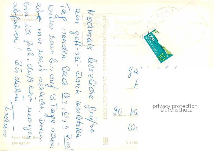 72730479 alte Postkarte Bansin Ostseebad Campingplatz Blick auf Strand und Ostsee postalisch gelaufen Erhaltung siehe scans [FriedD77] KatCode: 11110013059112