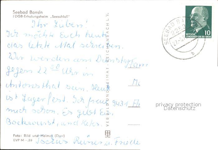 72388149 alte Postkarte Bansin Ostseebad Erholungsheim Seeschloss postalisch gelaufen Erhaltung siehe scans KatCode: 11110013059112