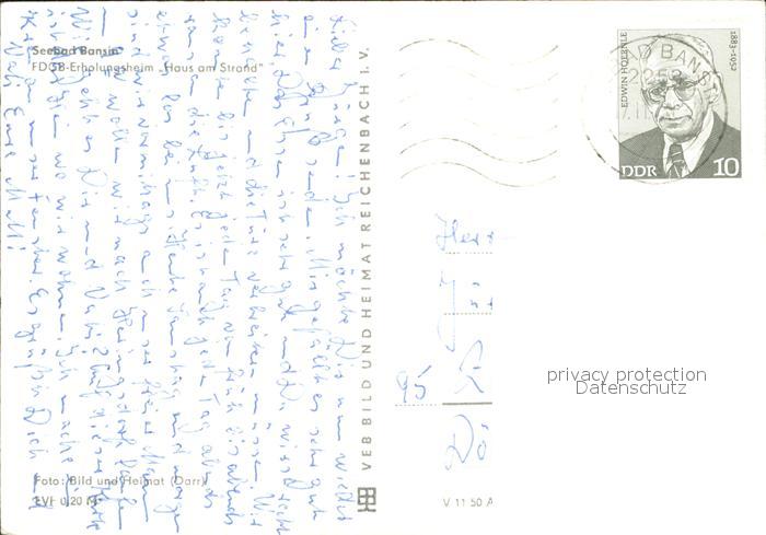 72043148 alte Postkarte Bansin Ostseebad FDGB Erholungsheim Haus am Strand postalisch gelaufen Erhaltung siehe scans KatCode: 11110013059112