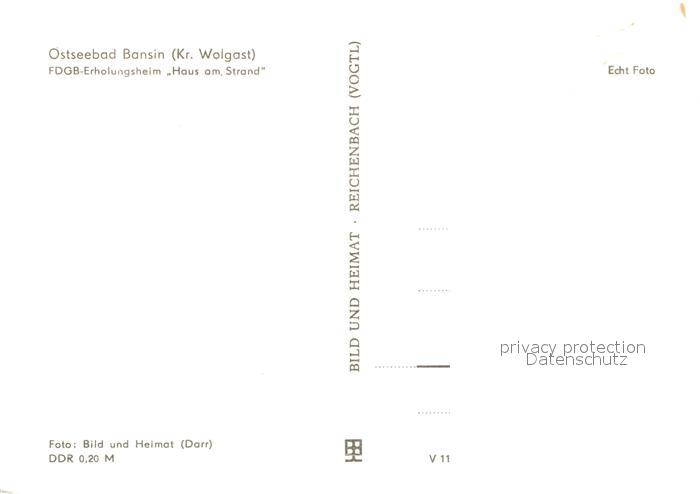 72963838 Bansin Ostseebad FDGB Erholungsheim Haus am Strand postalisch nicht gelaufen Erhaltung siehe scans [FriedD77] KatCode: 11110013059112