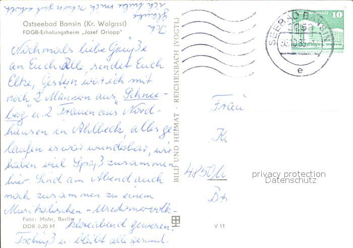 71977281 alte Postkarte Bansin Ostseebad FDGB Erholungsheim Josef Orlopp postalisch gelaufen Erhaltung siehe scans KatCode: 11110013059112