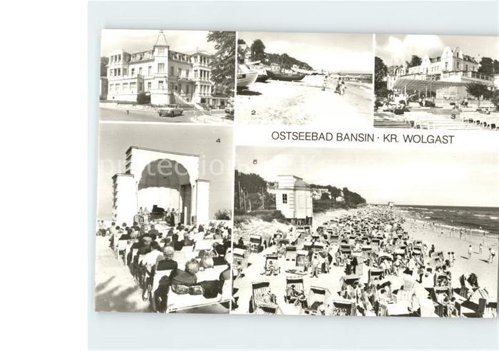 71950012 Bansin Ostseebad FDGB Erholungsheim Julian Marchlewski Fischerstrand Josel Orlopp Konzertpavillon Strand postalisch nicht gelaufen Erhaltung siehe scans KatCode: 11110013059112