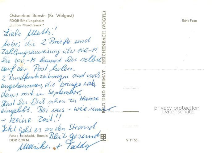 73757940 Bansin Ostseebad FDGB Erholungsheim Julian Marchlewski postalisch nicht gelaufen Erhaltung siehe scans [WerneD78] KatCode: 11110013059112