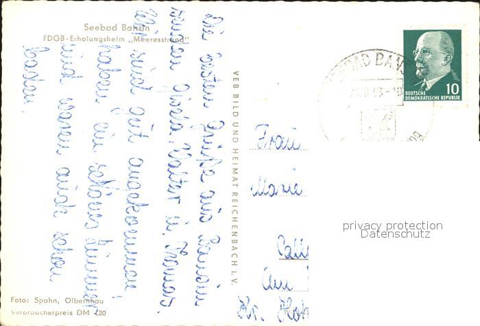 72443374 alte Postkarte Bansin Ostseebad FDGB Erholungsheim Meeresstrand postalisch gelaufen Erhaltung siehe scans KatCode: 11110013059112