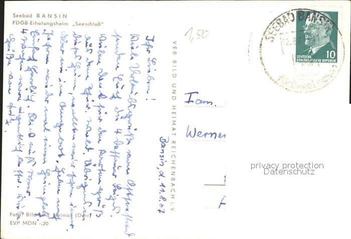 72075106 alte Postkarte Bansin Ostseebad FDGB Erholungsheim Seeschloss postalisch gelaufen Erhaltung siehe scans KatCode: 11110013059112