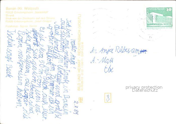 72337258 alte Postkarte Bansin Ostseebad FDGB Erholungsheime Strand Steilkueste postalisch gelaufen Erhaltung siehe scans KatCode: 11110013059112
