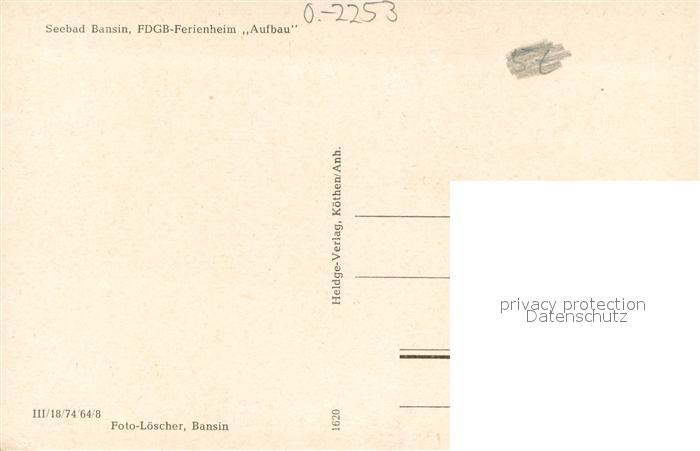 73706576 Bansin Ostseebad FDGB Ferienheim Aufbau postalisch nicht gelaufen Erhaltung siehe scans [WerneD78] KatCode: 11110013059112