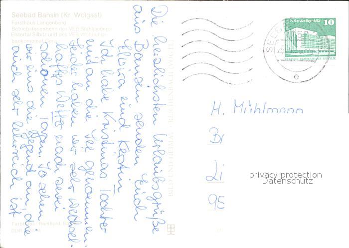 alte Postkarte Bansin Ostseebad Forsthaus Langenberg Betriebsferienheim postalisch gelaufen Erhaltung siehe scans
