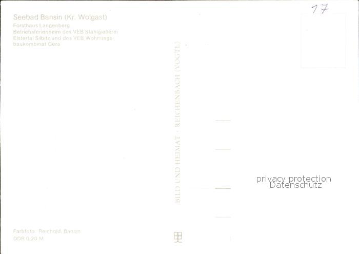 72290783 Bansin Ostseebad Forsthaus Langenberg Betriebsferienheim postalisch nicht gelaufen Erhaltung siehe scans KatCode: 11110013059112