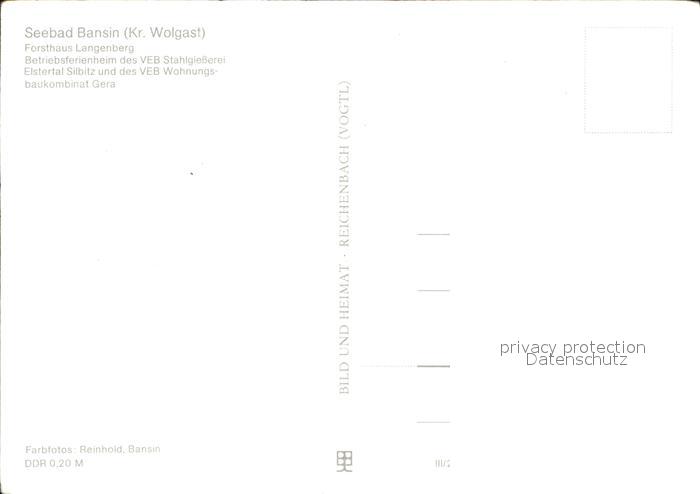 72592132 Bansin Ostseebad Forsthaus Langenberg Betriebsferienheim des VEB Stahlgiesserei Silbitz und des VEB Wohnungsbau Gera postalisch nicht gelaufen Erhaltung siehe scans [WerneD78] KatCode: 11110013059112