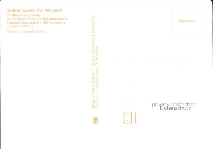 72418994 Bansin Ostseebad Forsthaus Langenberg Betriebsferienheim VEB Gera postalisch nicht gelaufen Erhaltung siehe scans KatCode: 11110013059112