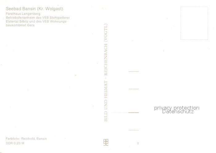 73016337 Bansin Ostseebad Forsthaus Langenberg Betriebsferienheim postalisch nicht gelaufen Erhaltung siehe scans [NatalD47] KatCode: 11110013059112