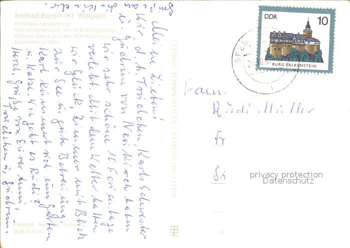72373567 alte Postkarte Bansin Ostseebad Forsthaus Langenberg Elstertal Silbitz FerienheimVEB Giesserei postalisch gelaufen Erhaltung siehe scans KatCode: 11110013059112