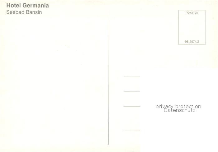 73334996 Bansin Ostseebad Hotel Germania postalisch nicht gelaufen Erhaltung siehe scans [LiesaD40] KatCode: 11110013059112