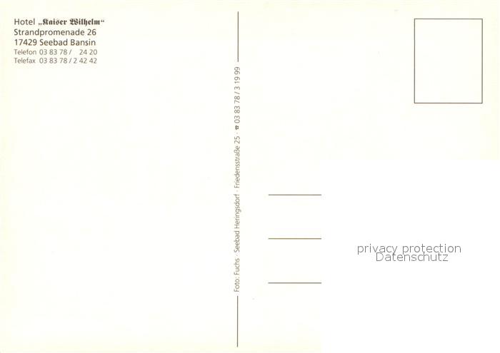 73722912 Bansin Ostseebad Hotel Pension Kaiser Wilhelm postalisch nicht gelaufen Erhaltung siehe scans [WerneD78] KatCode: 11110013059112