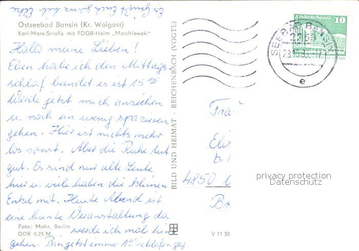 71998486 alte Postkarte Bansin Ostseebad Karl Marx Strasse FDGB Heim Marchlewski postalisch gelaufen KatCode: 11110013059112