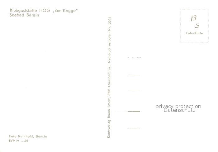 73210305 Bansin Ostseebad Klubgaststaette HOG Zur Kogge postalisch nicht gelaufen Erhaltung siehe scans [FriedD77] KatCode: 11110013059112