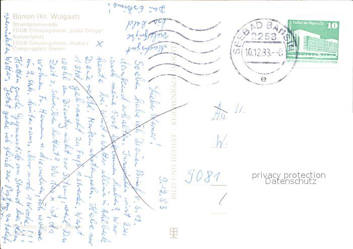 72383224 alte Postkarte Bansin Ostseebad Konzertplatz Camping Promenade postalisch gelaufen Erhaltung siehe scans KatCode: 11110013059112