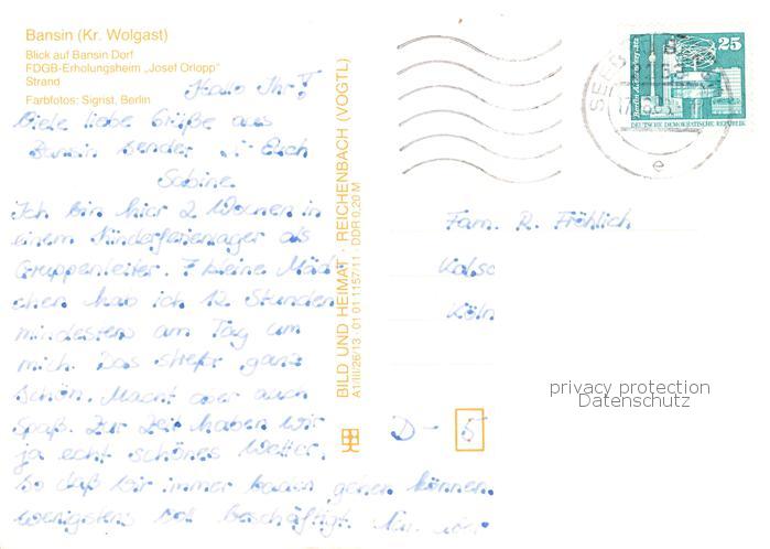 73863640 alte Postkarte Bansin Ostseebad Panorama FDGB Erholungsheim Josef Orlopp Strand postalisch gelaufen Erhaltung siehe scans [WerneD78] KatCode: 11110013059112