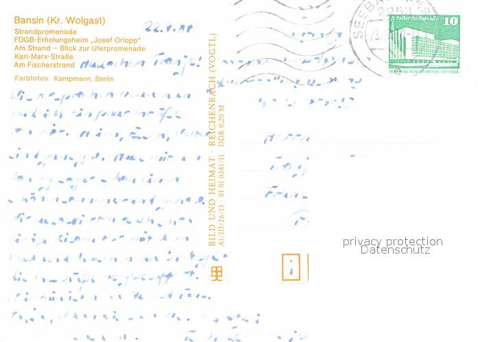 72884570 alte Postkarte Bansin Ostseebad Promenade FDGB Erholungsheim Josef Orlopp Karl Marx Str Am Fischerstrand postalisch gelaufen Erhaltung siehe scans [WerneD78] KatCode: 11110013059112