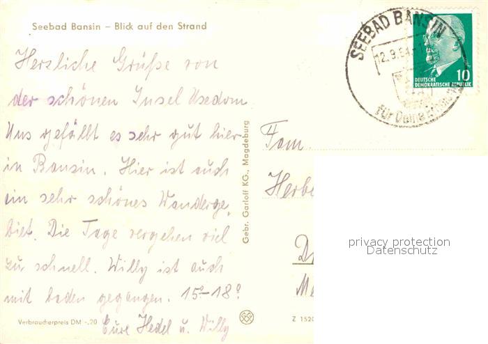 72632386 alte Postkarte Bansin Ostseebad Strand postalisch gelaufen Erhaltung siehe scans [FriedD77] KatCode: 11110013059112