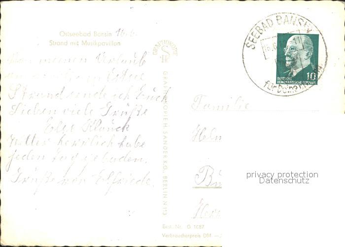72343467 alte Postkarte Bansin Ostseebad Strand Musikpavillon postalisch gelaufen Erhaltung siehe scans KatCode: 11110013059112