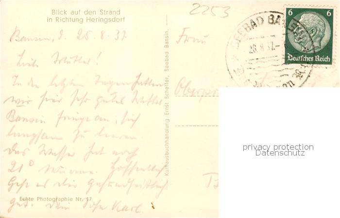 73792871 alte Postkarte Bansin Ostseebad Strand-Panorama postalisch gelaufen Erhaltung siehe scans [LiesaD40] KatCode: 11110013059112
