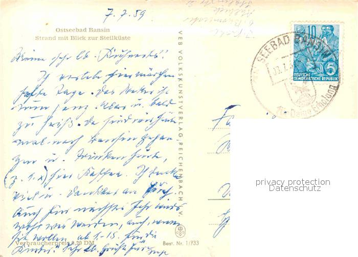 72898618 alte Postkarte Bansin Ostseebad Strand Steilkueste postalisch gelaufen Erhaltung siehe scans [PaolaD17] KatCode: 11110013059112