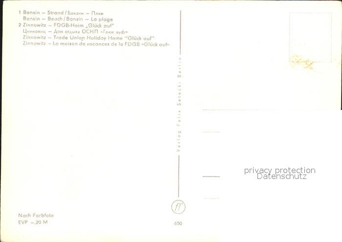 72557453 Bansin Ostseebad Strand Zinnowitz FDGB Heim Glueck auf postalisch nicht gelaufen Erhaltung siehe scans [KathaD79] KatCode: 11110013059112