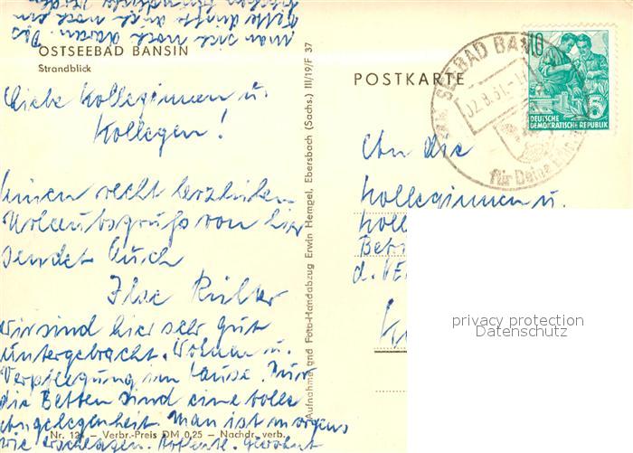 73135025 alte Postkarte Bansin Ostseebad Strandblick postalisch gelaufen Erhaltung siehe scans [FriedD77] KatCode: 11110013059112